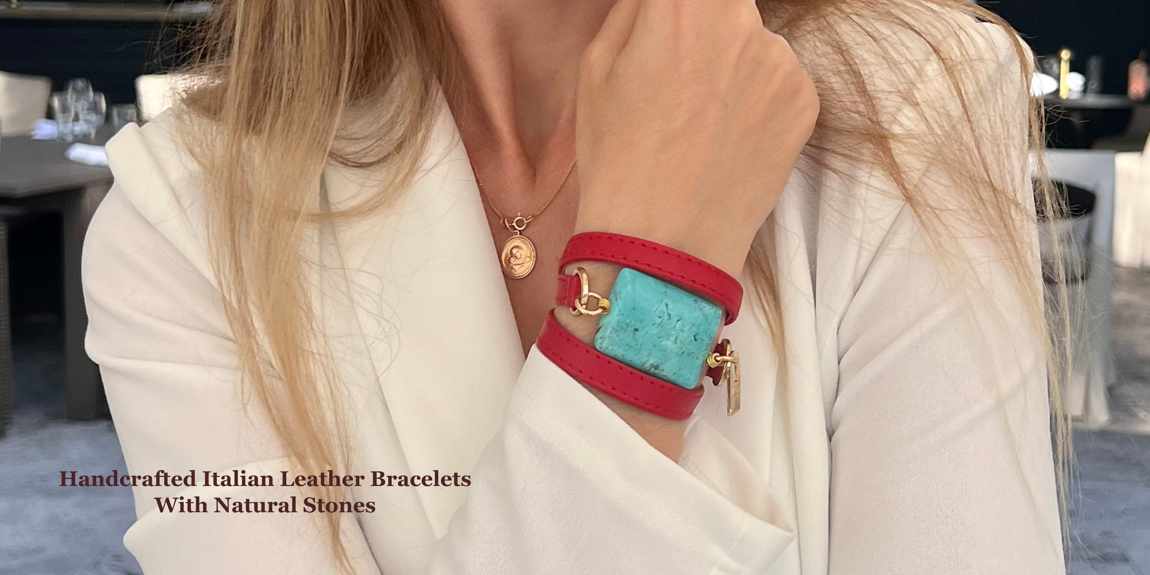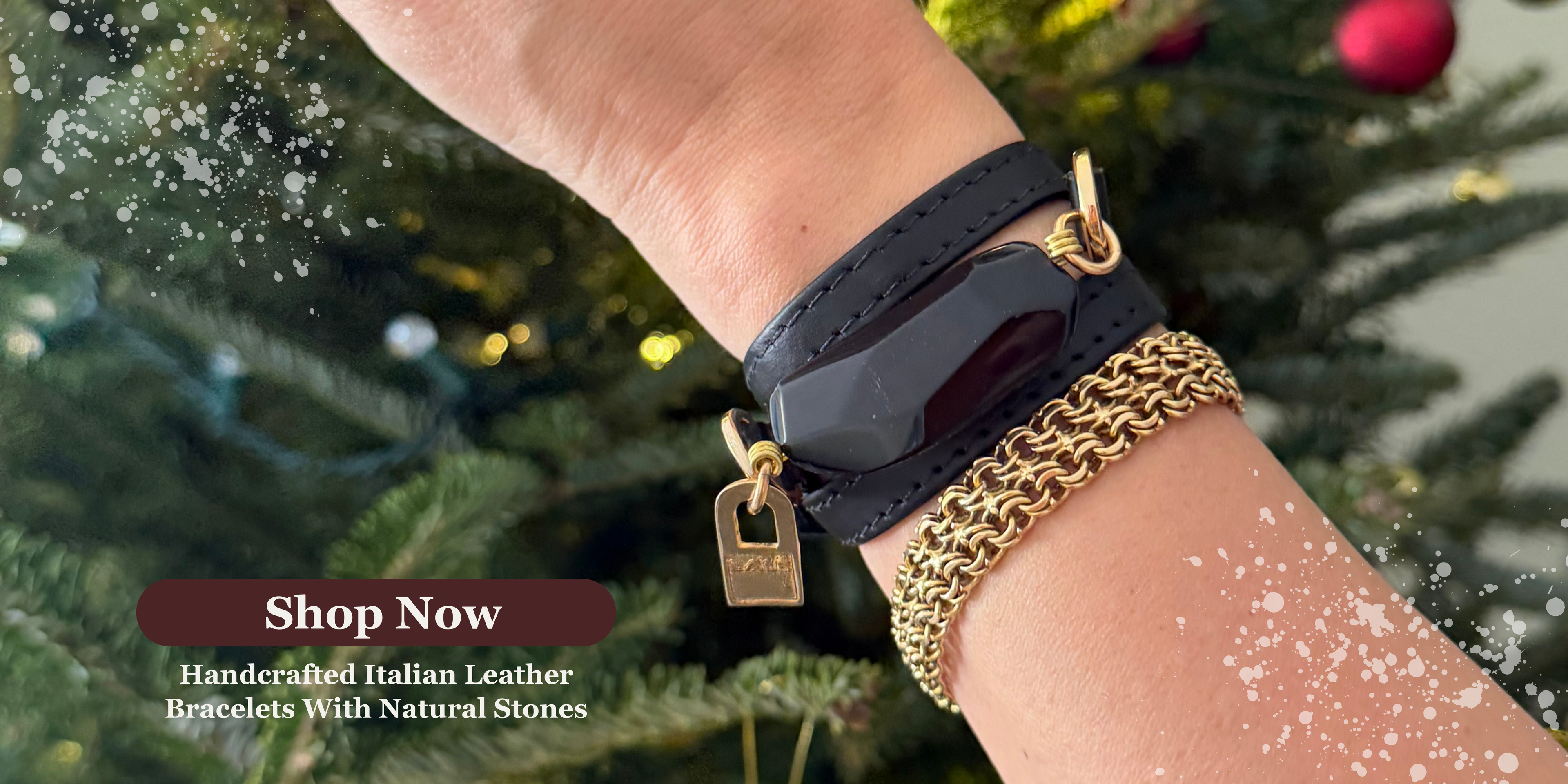 Every bracelet is made with Italian leather, natural stones, and gold-plated accents. No two pieces are ever the same — each one feels uniquely yours.