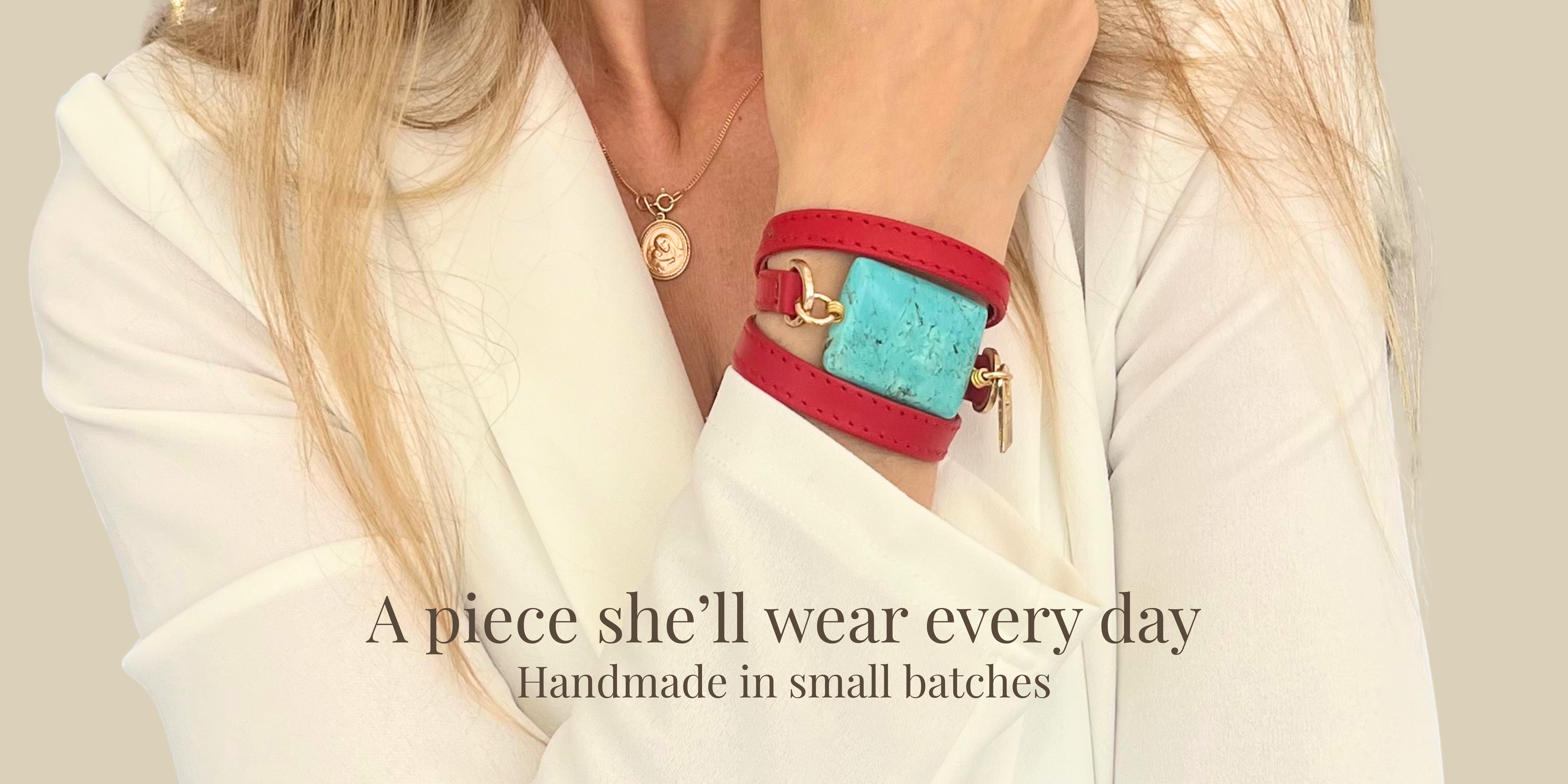 We’ve just released a small batch of our red leather bracelet with natural turquoise — one of our most requested combinations.