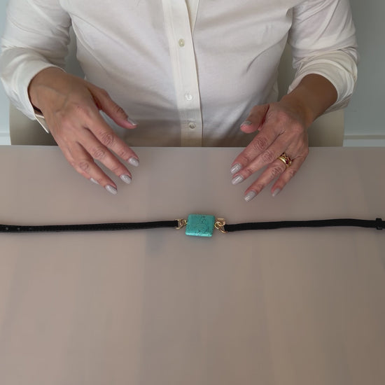 Triple Wrap Square Turquoise — Black Leather
